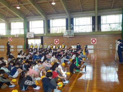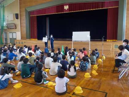 西警察署や呉羽交番の方、交通安全協会の方たちに来ていただき、安全な自転車の乗り方や交通ルールについて学びました。
