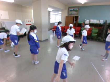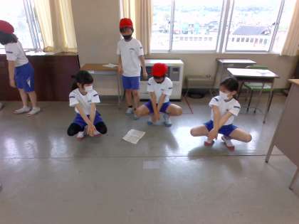 今日は、4年生に相撲体操を教えてもらいました。「こうしたらいいよ」「手をのばすよ」など、アドバイスをもらいながら練習したことで、最初よりも動きがよくなってきました。これからもがんばろう!