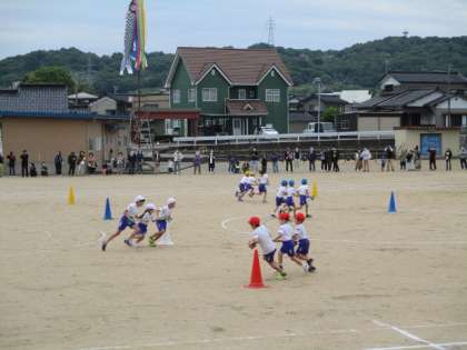 3・4年団体競技 公開日 2022/05/15 更新日 2022/05/15 行事より どの団も力を合わせながら、コーンを回っています。呉羽っ子の台風が元気よく吹き回っています。自然とおこる拍手がいいですね。