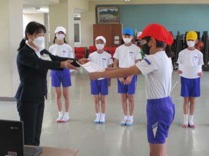 午前中に開催したスポーツフェスティバルの成績発表を動画配信で行いました。
