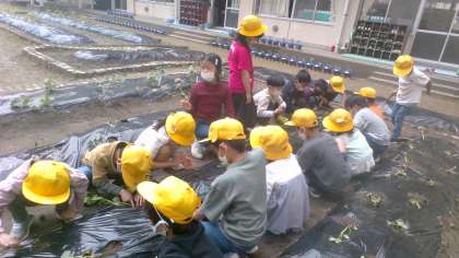 2年生は、スポーツフェスティバルのあとに、サツマイモの苗を植えました。先生の話を聞いて、しっかり植えることができました。これから大きく育つといいですね。