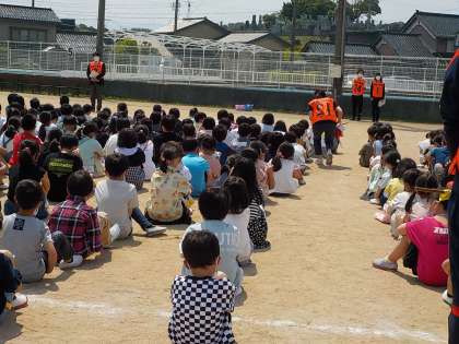 理科室から出火という想定で、全員がグラウンドへ避難しました。