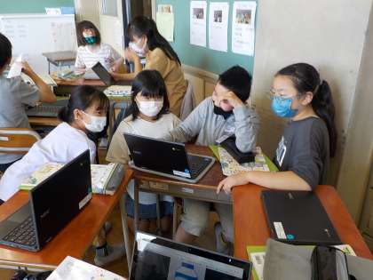 家庭科の時間に、朝食の大切さを学習した後、朝食のメニューを考えました。栄養のバランスや彩りなど、自分が気をつけたことをグループの友達に伝えるとともに、それぞれのメニューについてよかった点や改善点を伝え合いました。