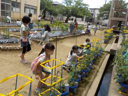 子供たちは、毎朝、水やりを行い、自分の野菜の成長を見守っています。