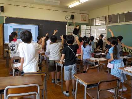 3年生 外国語活動 公開日 2022/06/03 更新日 2022/06/03 3年生の活動 外国語活動の学習の様子です。 「How many? 〜数えて遊ぼう〜」では、子供たちの大好きなじゃんけんゲームを英語で楽しんでいます。