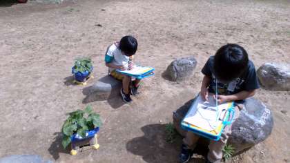 大きくなってきたはを観察しました。 手の大きさを比べたり、触って感触を確かめたりしました。