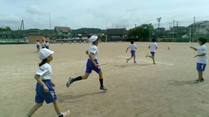 4年生 伸びで対決!リレー競争! 公開日 2022/06/13 更新日 2022/06/13 4年生の活動 体育の時間にリレーを行いました。最初に計った記録から練習を重ねてどれだけ記録が伸びたかを競っています。最初は後ろを向いて止まったままバトンをもらっていた子供たちですが、今では走りながら前を向いてもらえるまでになりました。バトンパスが上手くできたときには「やった!」という歓声が自然と沸き上がっていました。