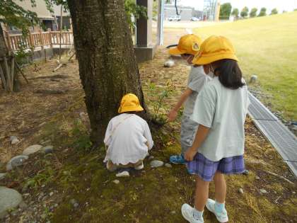 公園では、虫や植物を探してたくさんの自然と関わったり、友達と仲よく遊んだりすることができました。