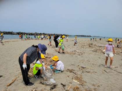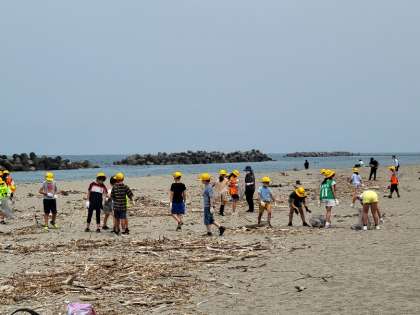 4年生 岩瀬浜散策 公開日 2022/06/21 更新日 2022/06/21 4年生の活動 岩瀬浜で清掃活動中。プラスチックごみ、タバコの吸殻、缶やペットボトルなど、たくさんのごみを拾い、砂浜がきれいになるように頑張っています。