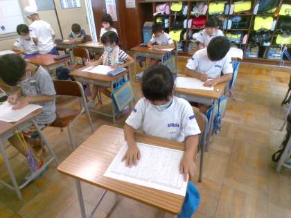 1学期を振り返って、楽しかったことや頑張ったこと、うれしかったことなどを考えました。作文に書いた後で、友達と読み合い、互いにアドバイスし合ったり、感想を伝え合ったりしました。