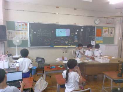 「1学期みんなでがんばりました」という意味をこめて、教室のみんなで、お楽しみ会をしました。それぞれの係の子供たちがドッジボールやクイズ等の企画を考えて楽しむことができました。