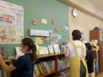 図書室のSDGsコーナーでも、熱心に本を探す子供の姿が見られます。