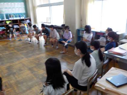 今回は、みんなで一つの大きな輪をつくって、フルーツバスケットを楽しみました。