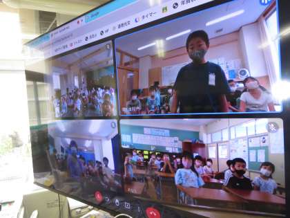 今日は、呉羽小2年生3クラスと山田小の2年生がミートで繋がり、それぞれの感想や質問を伝え合いました。