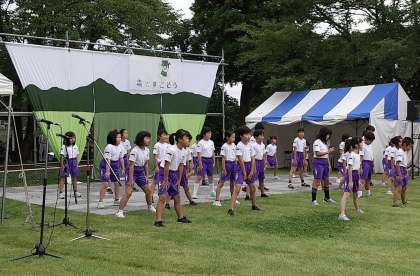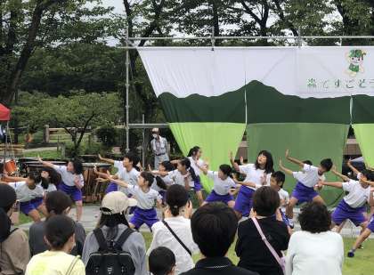 夏休み最終日の8月28日に、「悠久の森2022」というイベントがファミリーパークで開催されました。その場所で、4年生の中から希望した子供たちが、多くの観客の前で呉羽小学校伝統の相撲体操を披露しました。緊張する姿もみられましたが、子供たちは見事最後までやり遂げることができました。