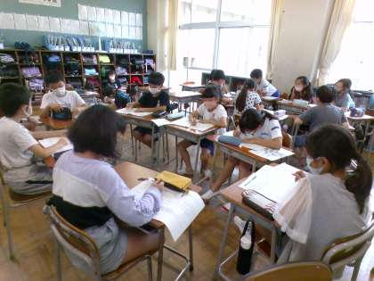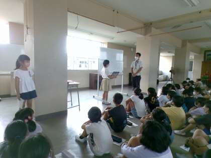 4年生 自然体験学習の事前学習 公開日 2022/09/01 更新日 2022/09/01 4年生の活動 4年生の自然体験学習が近づいてきました。 今日は入退所式の練習と、班ごとに活動の目当ての話し合いをおこないました。