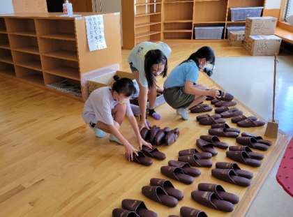 5年生 敬老の集い 公開日 2022/09/10 更新日 2022/09/10 5年生の活動 3年ぶりに開催された呉羽地区の敬老の集いのお手伝いをしています。玄関では元気な挨拶で出迎え、受付でのお土産渡し、会場での下足等の履き替え補助をしながら、笑顔で働いています。