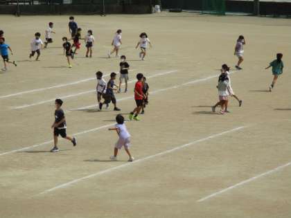 呉羽っ子タイム タグ取り競争 公開日 2022/09/14 更新日 2022/09/14 行事より からりとした風が吹く中、集会委員会主催のタグ取り競争が行われました。今日は中学年が参加し、思いっきりグラウンドを走って楽しんでいました。
