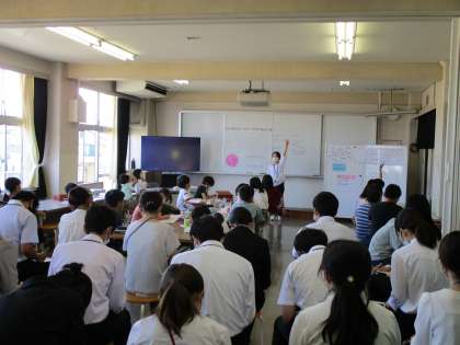 市内の2年次の先生と初任の先生が集まって、授業づくりや子供の話の受け止め方について研修を行いました。3年生の算数の授業を参観しての研修会でしたが、授業の中では、子供たちが自分の考えを友達に伝え、互いの考えから学び合う様子がたくさんみられました。授業後の協議会では、先生方の活発な意見交換が行われました。