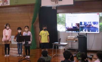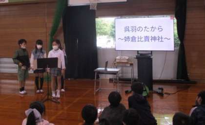 自分たちが見付けた「くれはのたから」をスライドにまとめて、発表しています。どうして宝だと考えたのか、インタビューして聞いてきたことをもとに、一人一人がしっかり理由付づけて伝えようとしています。