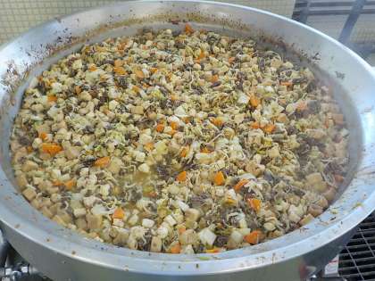 今日の献立は、ごはん、厚焼き卵、もやしのおひたし、すきやき、バナナ、牛乳でした。すきやきは、具だくさんで、すきやき麩も入っていました。美味しかったです。