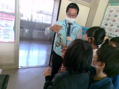 ファミリーパークの講師の先生から呉羽丘陵にいる生き物について学習しました。様々な生き物に触れ合ったり、話を聞いたりすることで、呉羽丘陵にいる生き物について理解を深めました。