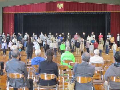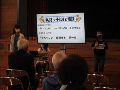 5年生が歌のプレゼントをしたり、6年生がSDGsの取り組みを紹介したりしました。