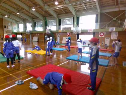 3年生 器械運動 公開日 2022/12/02 更新日 2022/12/02 3年生の活動 体育科では、「器械運動」のマット運動に取り組んでいます。 去年の自分よりもレベルアップを目指して意欲的に活動しています。