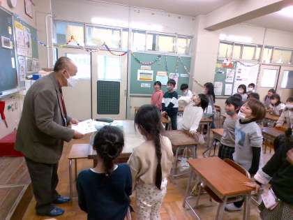 読み聞かせが終わったあとに、代表児童が感謝状を渡し、子供たちは笑顔でお礼を伝えました。