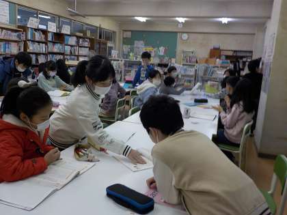 3年生 図書室へ行ったよ 公開日 2022/12/15 更新日 2022/12/15 3年生の活動 3年生は、国語科でお話づくりに取り組んでいます。 ずらりと並んだ物語の展開や人物の描写をお手本にして、自分なりの作品を考えています。