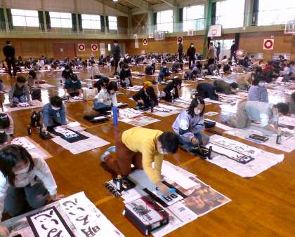 3年生 書き初め大会 公開日 2023/01/10 更新日 2023/01/10 3年生の活動 3年生は初めて毛筆での書き初め大会に取り組みました。 「明るい心」と一筆一筆丁寧に書き上げてました。 子供たちは冬休みの成果を十分に発揮しようと真剣な表情でした。