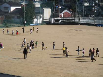 「雪に輝く立山の〜」と校歌の歌詞にある通り、4階のベランダからは素晴らしい景色が眺められます。グラウンドでは、子供たちがドッジボールを楽しんでいます。外で元気いっぱい走り回っています。