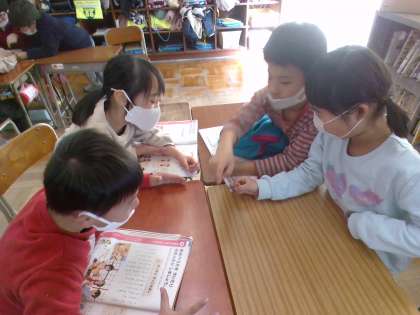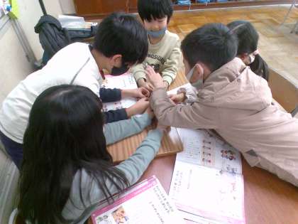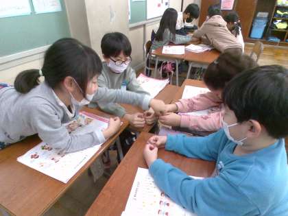 音楽科では、「ずいずいずっころばし」や「なべなべそこぬけ」などのわらべうたを、みんなで合わせて楽しんでいます。