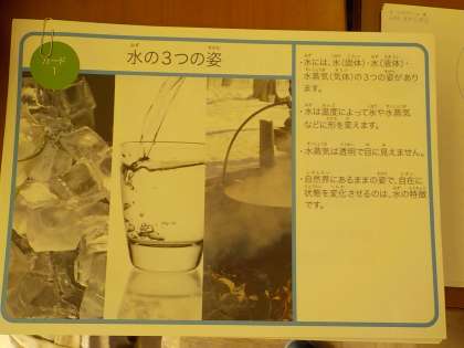 中には、「水蒸気;気体〜水;液体〜氷;固体」という水のすがたや特徴について、分かりやすく書かれたものも多くありました。