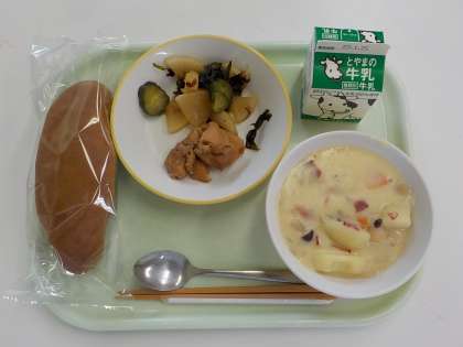 今日の給食 公開日 2023/01/18 更新日 2023/01/18 給食室より 今日の献立は、ココアコッペパン、照焼チキン、海藻サラダ、豆ときのこのクリーム煮、牛乳でした。クリーム煮は、野菜の甘みとベーコンのうま味が程よく合わさってとてもおいしかったです。ご馳走さまでした。