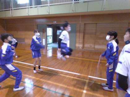 4年生では、2月1日の「学年長縄大会」に向けて毎日練習を重ねています。クラス対抗で3分間に八の字跳びを何回跳べるかで競い合います。クラスで目当てについて話し合い、目当てに向かって練習に励んでいます。自己ベストを目指し、声をかけ合いながらがんばっています。