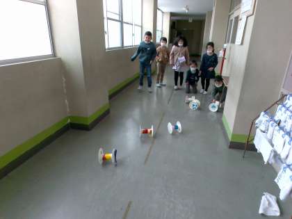 図画工作科の学習の時間に、紙皿や紙コップを使って転がるおもちゃを作りました。自分で工夫して飾りを付けた作品がよく転がると、子供たちはとても楽しそうでした。