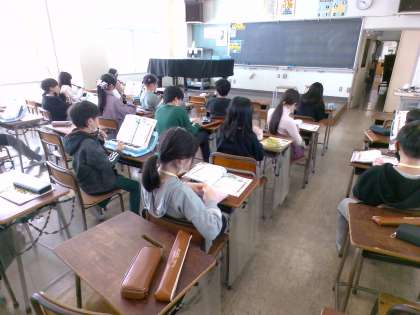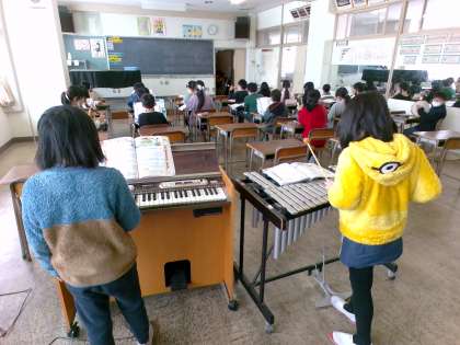 3年生は、音楽の学習で合奏に挑戦しています。グループごとに楽器を決めて練習に取り組んでいます。
