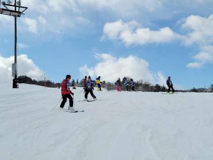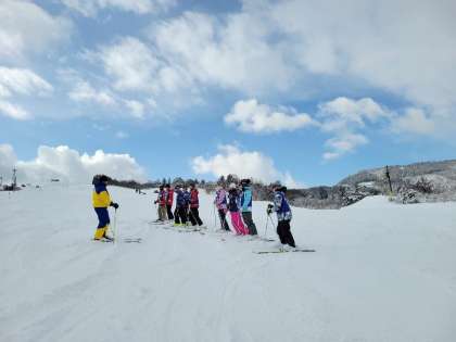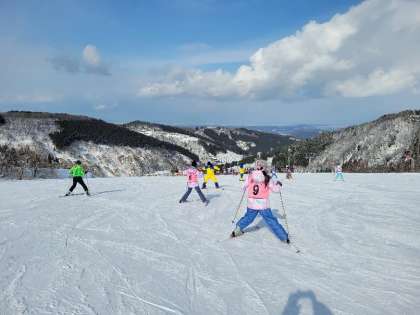 昼食のカレーライスで、エネルギー補給した後も元気に滑っています。リフトにのって頂上から見渡す景色は最高でした。6年生は昨年より上達したと嬉しそうです。