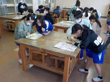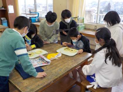 呉羽っ子タイムに、給食委員会主催の「豆つまみ大会」を行いました。一週間の練習期間後に、それぞれのクラスで予選会を開き、箸の持ち方が上手で豆をたくさん運べた代表児童が出場しました。開始の合図と共に一斉に豆つまみがスタートすると、緊張しながらも接戦が繰り広がりました。小さい小豆から大きい白花豆まで箸でつまむのは安易ではないですが、1つでも多くの豆を摘まもうとする頑張っている友達にエールを送る姿もみられました。