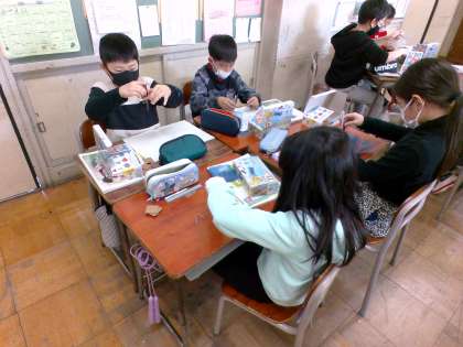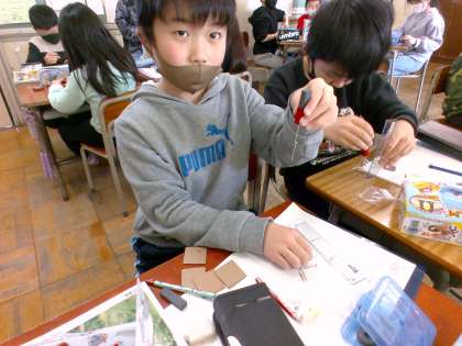 3年生 じ石につけよう 公開日 2023/02/09 更新日 2023/02/09 3年生の活動 理科では磁石について学習しています。今日は磁石の引き付ける力について実験しました。子供たちは、「ダンボールをはさんでも付いたよ」「浮いてるみたい」と、大盛りあがりでした。