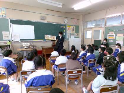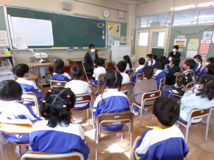 図書館司書訪問 公開日 2023/02/09 更新日 2023/02/09 1年生の活動 市立図書館司書の方が絵本の紹介をしてくださいました。 1年生の子供たちは、読み聞かせを通して絵本の世界を味わうことができました。 図書館司書の先生方ありがとうございました。