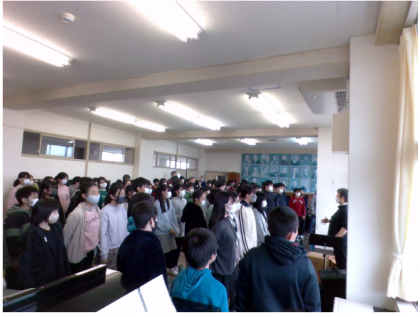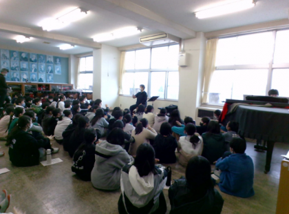 6年生では卒業式で歌う「旅立ちの日に」を練習しています。今日は外部講師の黒田先生から、音の強弱や速さ、歌い方などを教えていただきました。これからも練習をがんばります。 (6年T.S)