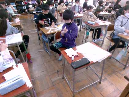 図画工作科では、光を通す材料を使って「光のサンドイッチ」を作成します。今日は、材料からどんな作品を作ろうか考えました。どんな作品になるのか楽しみです。
