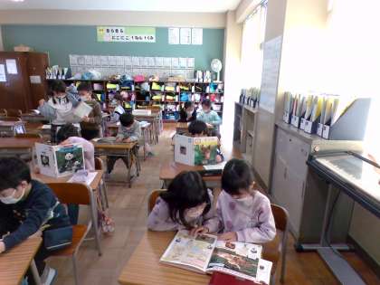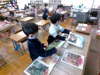 国語科でライオンやしまうまの赤ちゃんについての説明文を学習しました。他の動物の赤ちゃんはどうか比べながら、いろいろな動物の赤ちゃんの本を読みました。