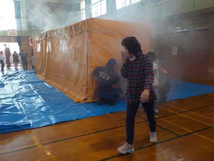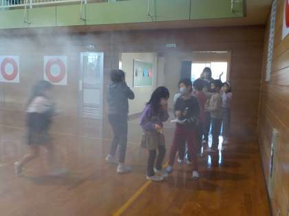 子供たちからは「前が見えにくくて不安だった」「煙が上へあがっているね。体を低くして歩かないといけないな」などの声が上がりました。 。