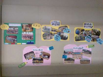 5年生 卒業間近の6年生に向けて 公開日 2023/03/02 更新日 2023/03/02 情報委員会より 5年生が、6年生の思い出写真を振り返る掲示物を作ってくれました。これまでの6年間の行事をまとめてもらって、6年生も嬉しそうでした。 Y/R
