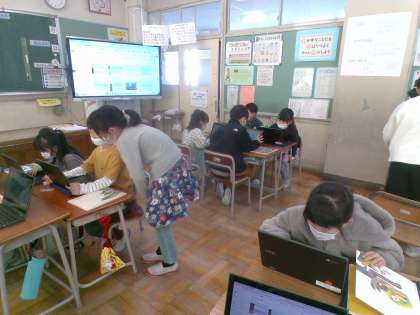 スライドにあらすじや本を読むと分かるクイズを作り、互いに紹介し合いました。