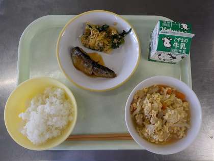 今日の給食 公開日 2023/03/09 更新日 2023/03/09 給食室より 今日の献立は、ごはん、いわしのおろし煮、納豆和え、卵とじ、牛乳でした。納豆和えは、たくあんと小松菜の彩りがきれいでした。卵とじは食べ応えがあり、おいしかったです。