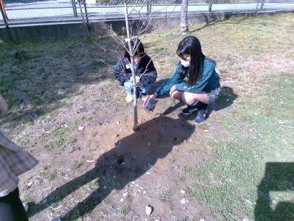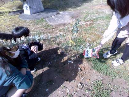 今日は、バザーの売上金で植えた木に肥料をあげてきました。